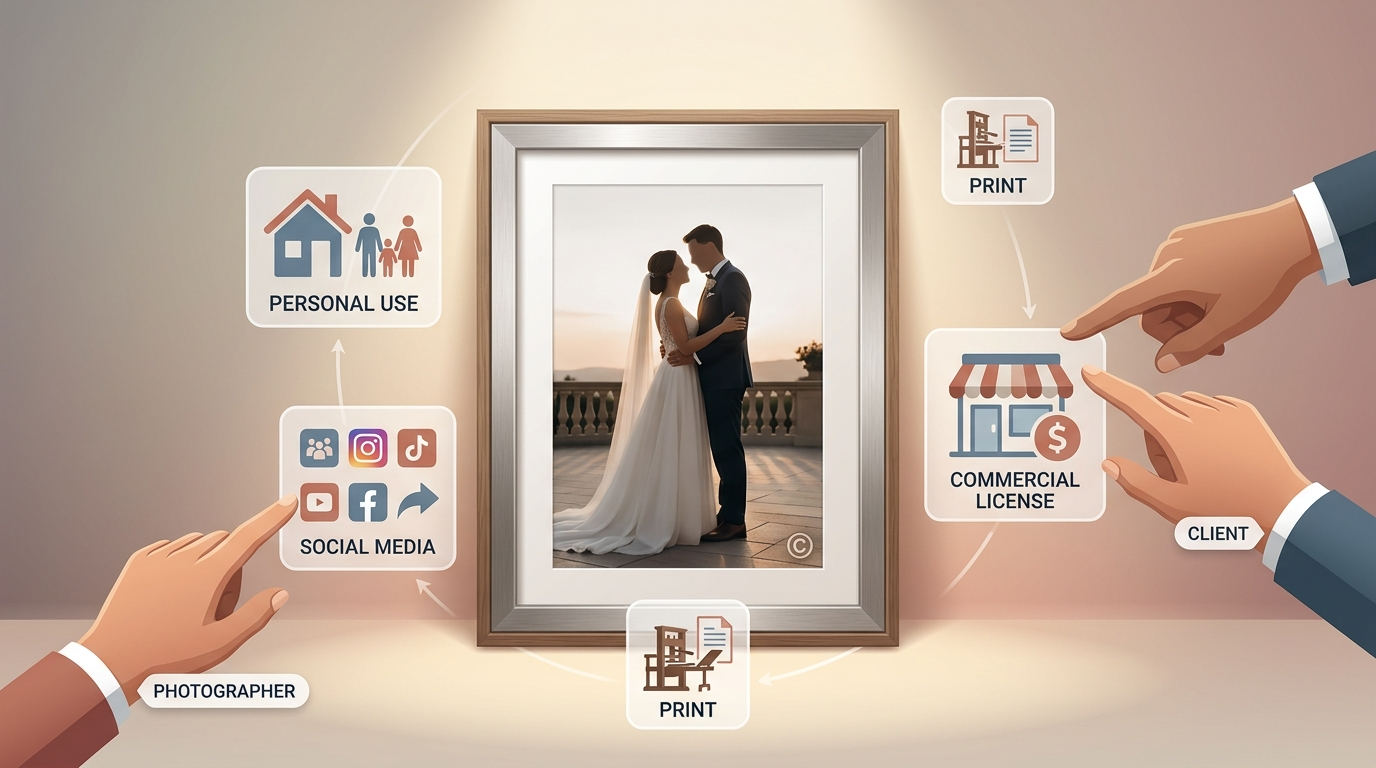 Define exactly how clients can use the photos—personal sharing, social media, family printing—and what rights you keep, such as copyright ownership and marketing use.